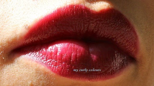 La parte interna delle labbra inizialmente era perfetta, ma, avendo applicato il rossetto prima di registrare un video, dopo aver parlato circa un quarto d’ora, ho notato che l’interno del labbro inferiore si stava già leggermente schiarendo. Nelle foto fatte subito dopo aver registrato il video si nota.