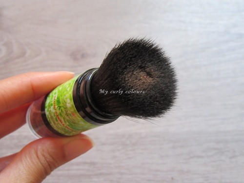 Prodotto da un lato, pennello retraibile dall’altro, basta inclinarlo per far fuoriuscire la polvere colorata.